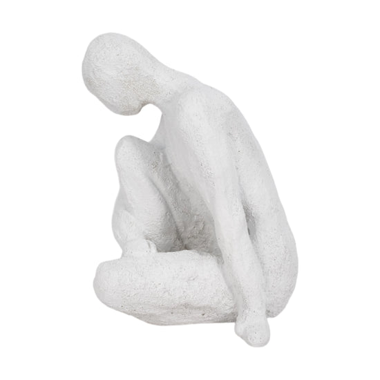 Minimalist Abstract Sitting Figure Sculpture – Textured White Finish